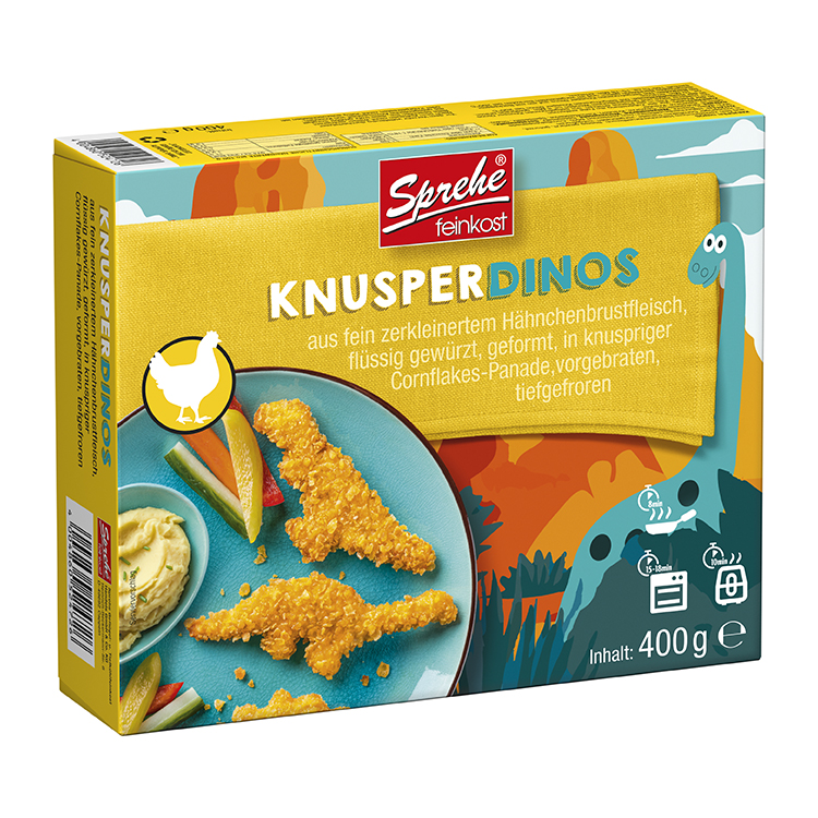 Aus fein zerkleinertem Hähnchenbrustfleisch geformt, mit einer knusprigen Cornflakespanade, flüssig gewürzt und vorgebraten, einzeln entnehmbar, tiefgefroren