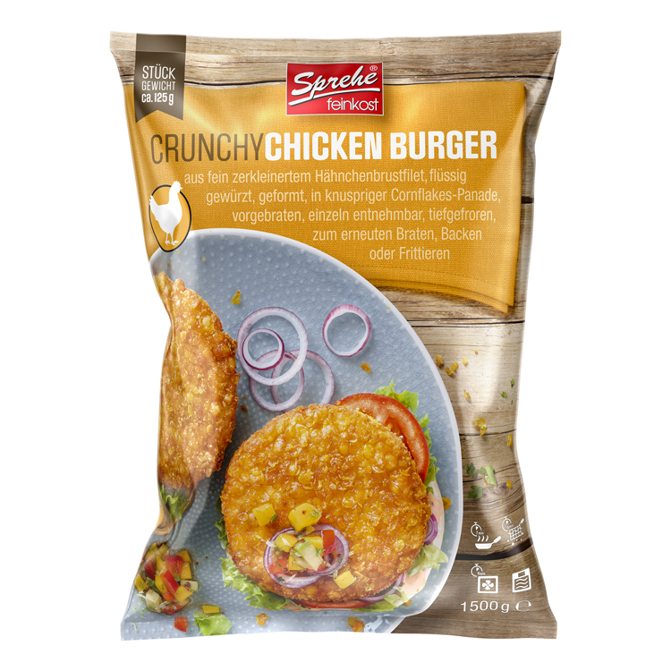 Aus fein zerkleinertem Hähnchenfleisch geformt, flüssig gewürzt, in Cornflakes-Panade, vorgebraten, einzeln entnehmbar, tiefgefroren