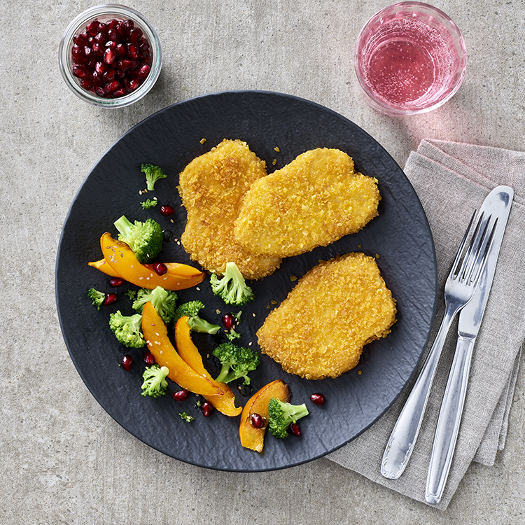 auf Basis von Reis und Weizen, geformt, gewürzt, in einer knusprigen Panade, vorgebraten, einzeln entnehmbar, tiefgefroren