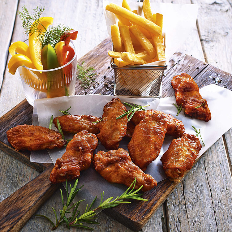Hähnchenflügel, ohne Spitze, geteilt, flüssig gewürzt, mild mariniert, vorgegart, einzeln entnehmbar, tiefgefroren