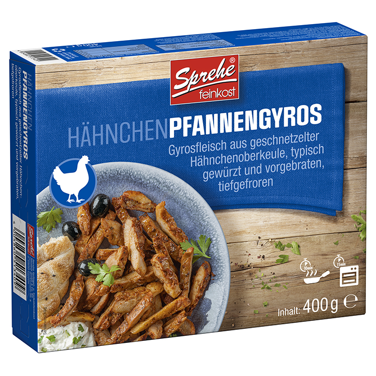 Gyrosfleisch aus geschnetzelter Hähnchenoberkeule, typisch gewürzt und vorgebraten, tiefgefroren