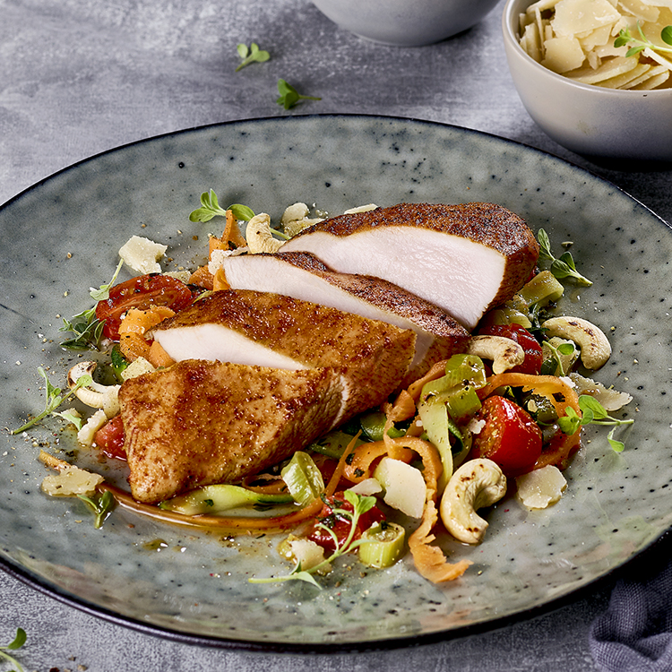 Hähnchenbrustfielt, geschnitten, flüssig gewürzt, einzeln entnehmbar, tiefgefroren