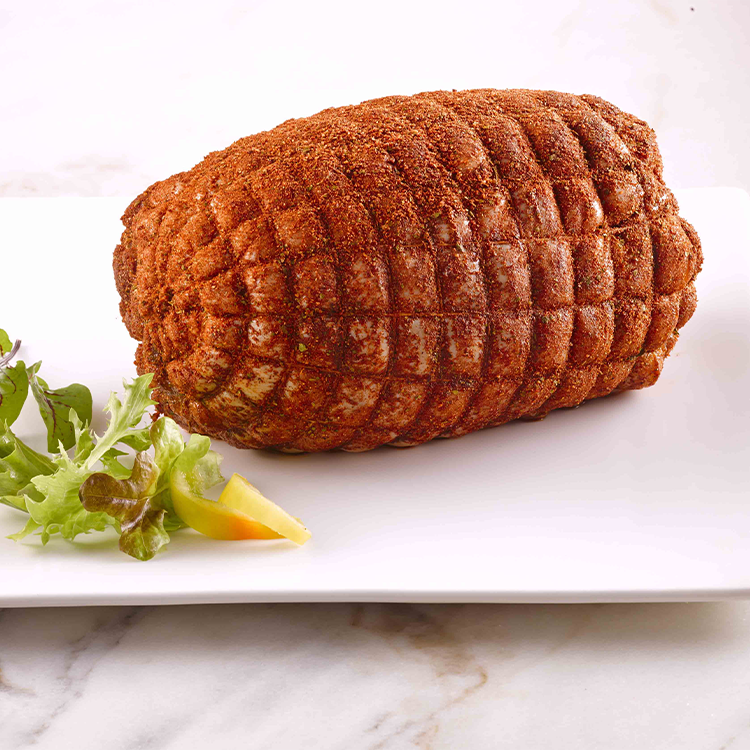 Aus Puten-Oberkeulenfleisch mit Haut, mit 8 % Flüssigwürzung, tiefgefroren