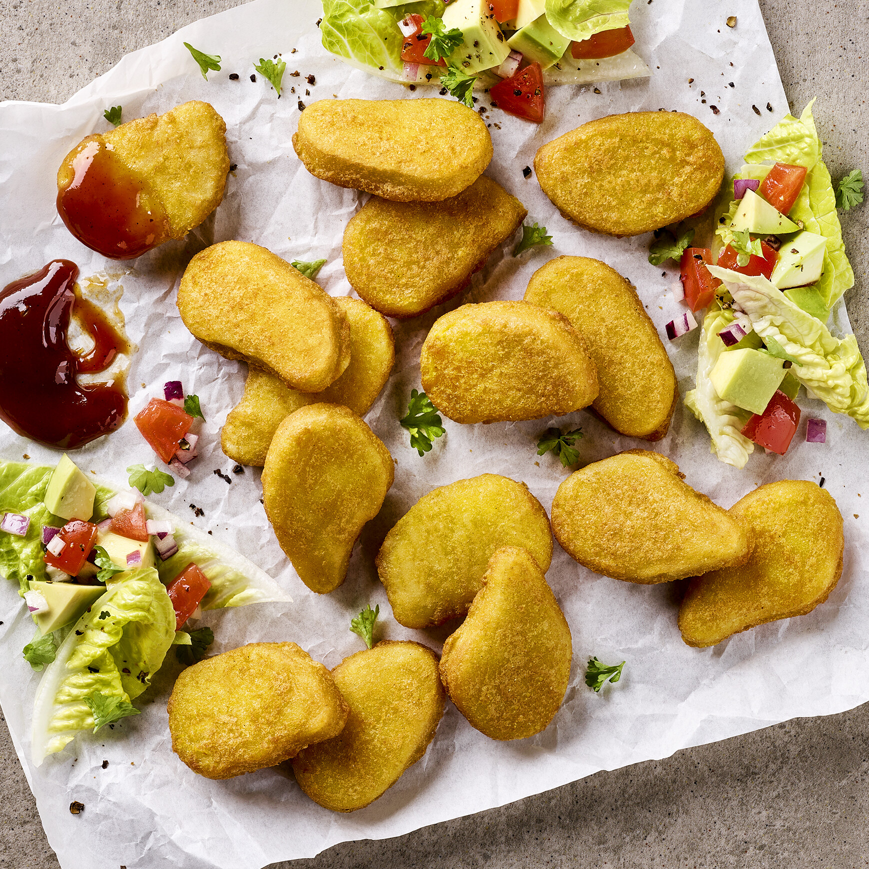 auf Basis von Reis und Weizen, geformt, gewürzt, mit Backteig ummantelt, vorgebraten, einzeln entnehmbar, tiefgefroren